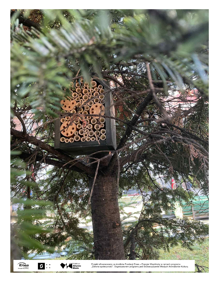 Po wyborze ostatecznego projektu nadszedł czas na najbardziej emocjonujący etap — nasadzenia. Uczniowie, nauczyciele oraz zaproszeni specjaliści wspólnie sprzątali i przygotowywali teren. Zasadzono rośliny miododajne, krzewy ozdobne i zioła, a także ustawiono domki-hotele dla pszczół, aby wspierać lokalną bioróżnorodność.
