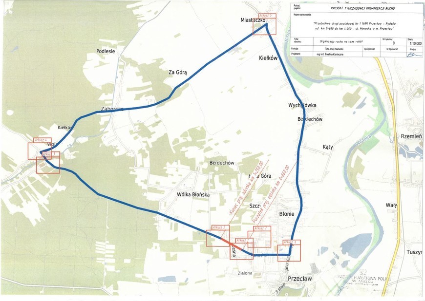 Zamknięcie drogi ma związek z realizowaną w tym miejscu inwestycją pod nazwą "Przebudowa drogi powiatowej nr 1168R Przecław - Rydzów od km 0+660 do km 1+250 - ul . Wenecka Przecław”.
