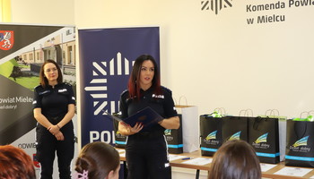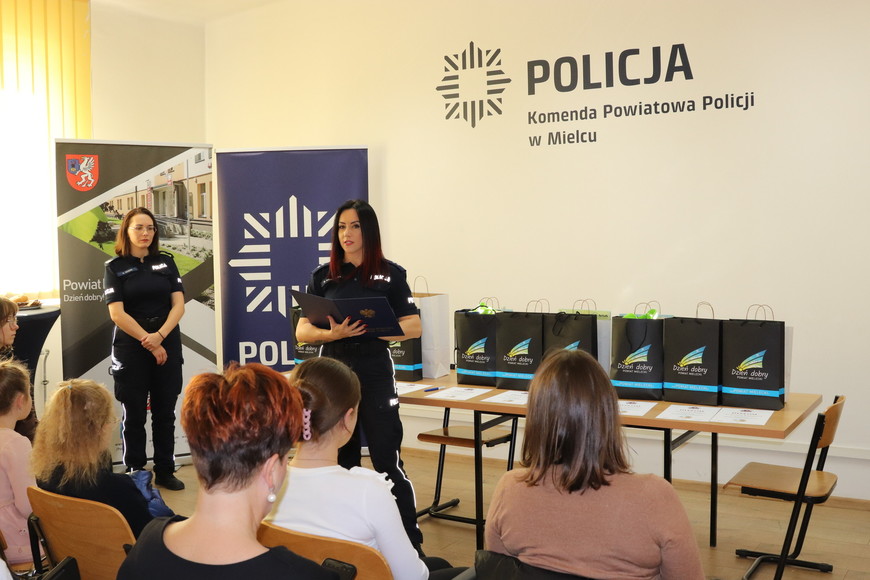 Dzisiaj ( tj.23.10.2025 r.) w Komendzie Powiatowej Policji w Mielcu odbyła się uroczystość podsumowująca i wręczenia nagród laureatom konkursu plastycznego „Bezpieczne Wakacje 2025”.