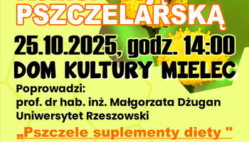 Wykład pt. "Pszczele suplementy diety" poprowadzi prof. dr hab. inż. Małgorzata Dżugan z Uniwersytetu Rzeszowskiego. Będzie to doskonała okazja do pogłębienia wiedzy na temat wykorzystania produktów pszczelich – takich jak miód, pyłek, propolis czy pierzga – w codziennej diecie jako naturalnych suplementów wspierających zdrowie.